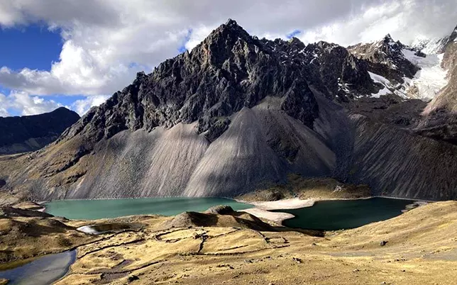 La hermosa y gran montaña de Ausangate nos recibe con gran energía y misticismo sagrado. Se encuentra ubicada a 100 kilómetros al sudeste de la ciudad de Cusco, altura de 6,385 m.s.m