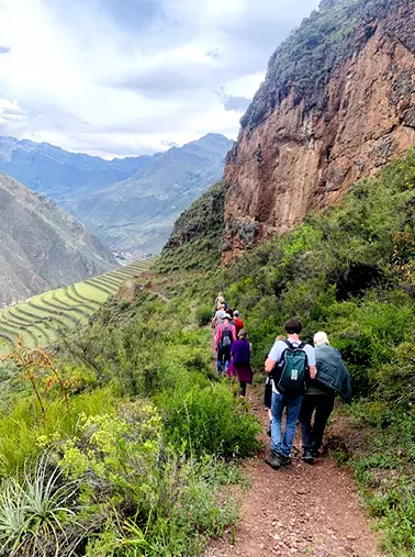 Caminata de la parte superior de parque al pueblo de Pisac . visita a los sagrados  templos y huacas del lugar.